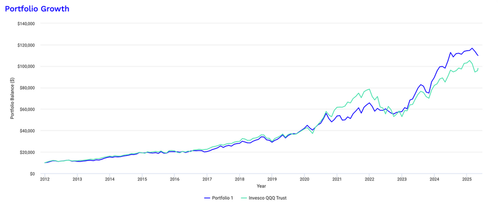 Here is a backtest of this strategy (Portfolio 1) from 2012-2025.